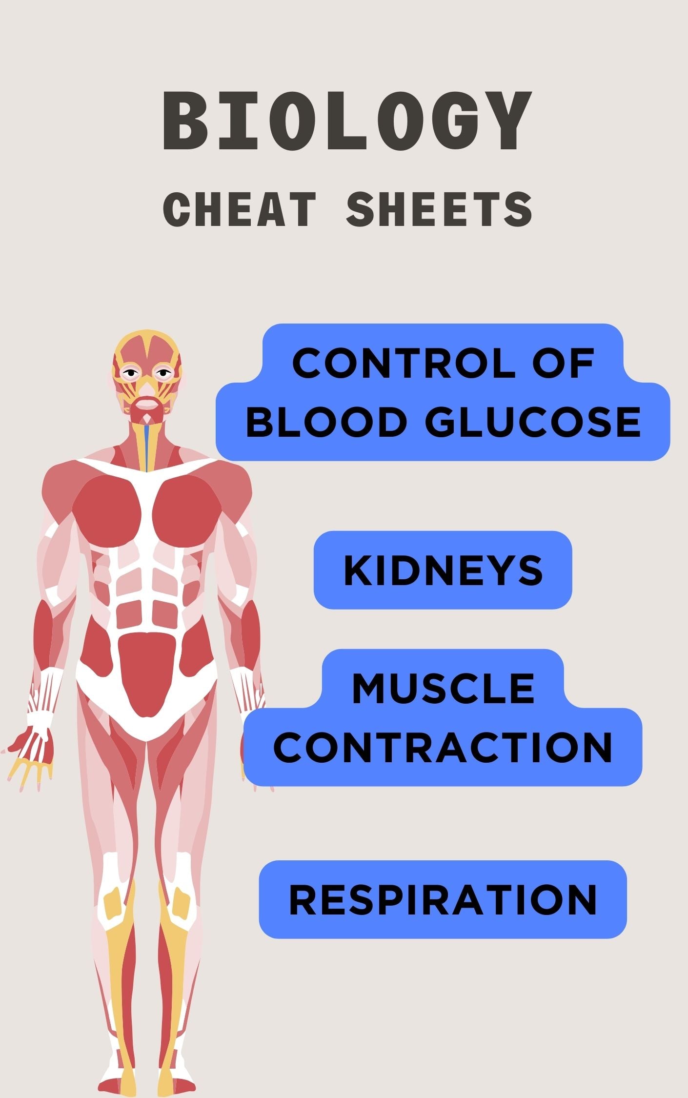This product includes all 4 different cheat sheets, including Muscle contraction, Kidneys, Respiration and control of blood glucose. This is made following the AQA Biology spec, by an A* student.